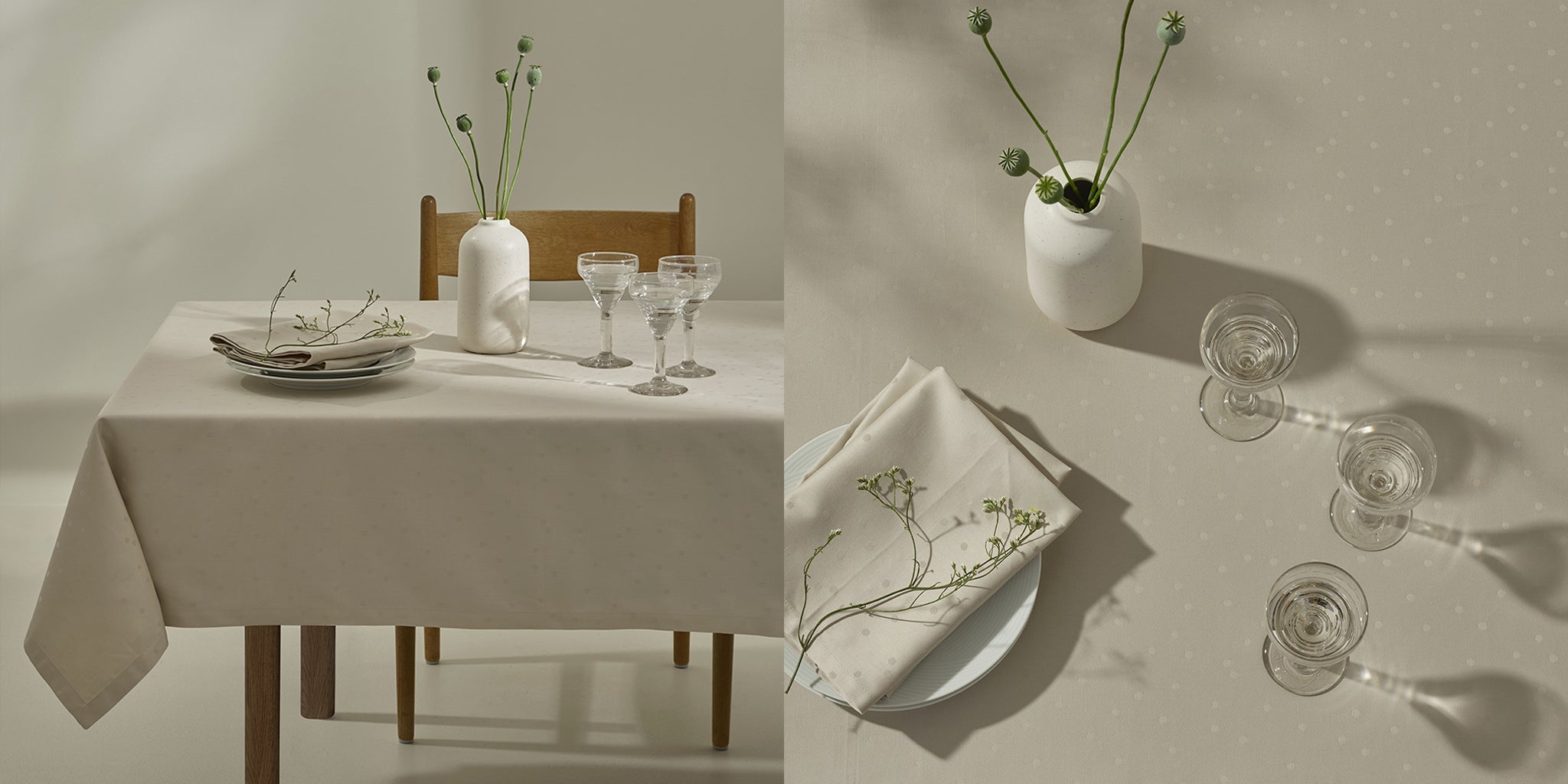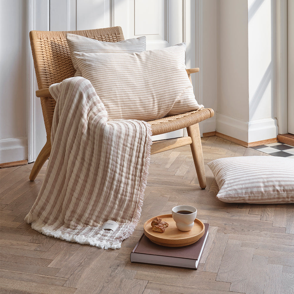 En palette af lyse, dæmpede farver og raffinerede tekstiler til et hjem i balance. Inspireret af naturens organiske former, farver og rytme bringer serien en sanselig ro ind i hjemmet og skaber rum, hvor øjet og kroppen finder hvile.