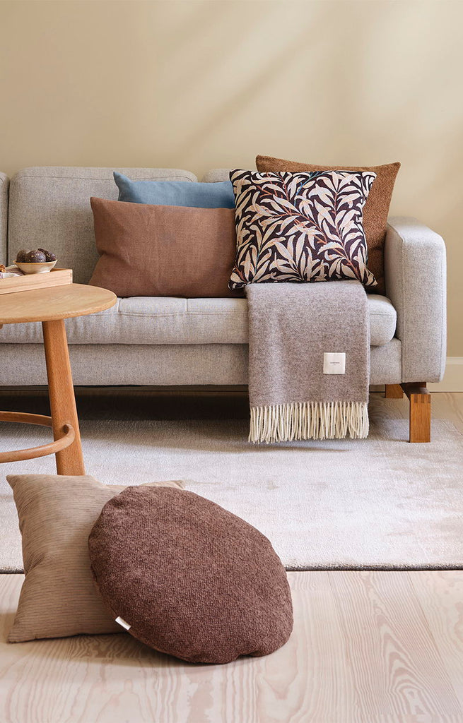 Ensfarvet Taffy pude i en enkel, luksuriøs bouclé, som evner at løfte rummets udtryk og skabe en særlig stemning. Taffy findes i flere størrelser og smukke farver.