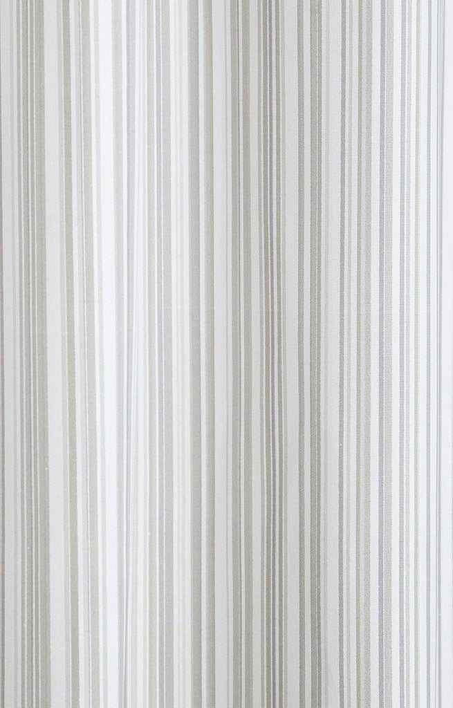 Eksklusivt antibakterielt badeforhæng i et printet design, der med smalle striber i neutrale toner skaber et harmonisk udtryk.