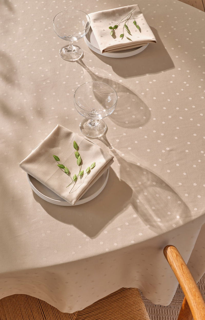 Små og lette prikker spredt i et simpelt design giver den enkle Confetti dug et charmerende og legende udtryk.