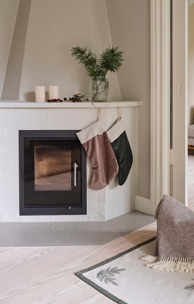 Den smukke julesok af velour, foret med vores casual Marrakech stof i hør, er syet af restmetervarer fra vores pude kollektioner. Det er nemlig vigtigt for os at minimere spild af hensyn til miljøet. Perfekt som adventsgave.