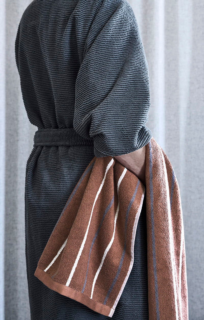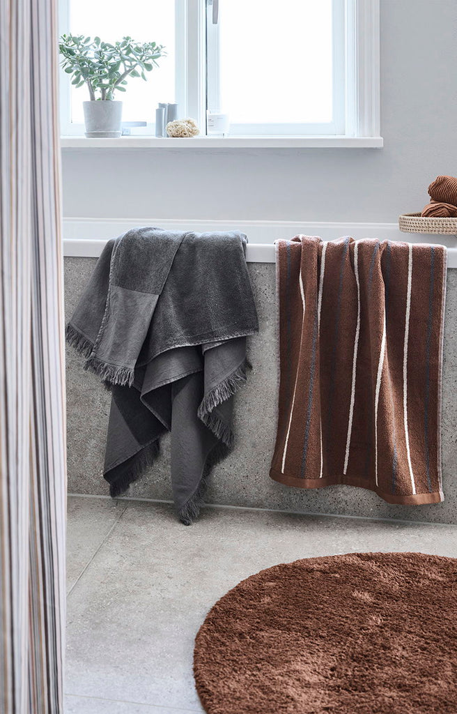 Lane håndklædet er vævet i 100% økologisk og GOTS-certificeret bomuld. Flot farvekombination af clay, grå og moon. Findes i flere størrelser. Mix og match med Compliments Slow håndklæder, badeforhæng og bademåtter.