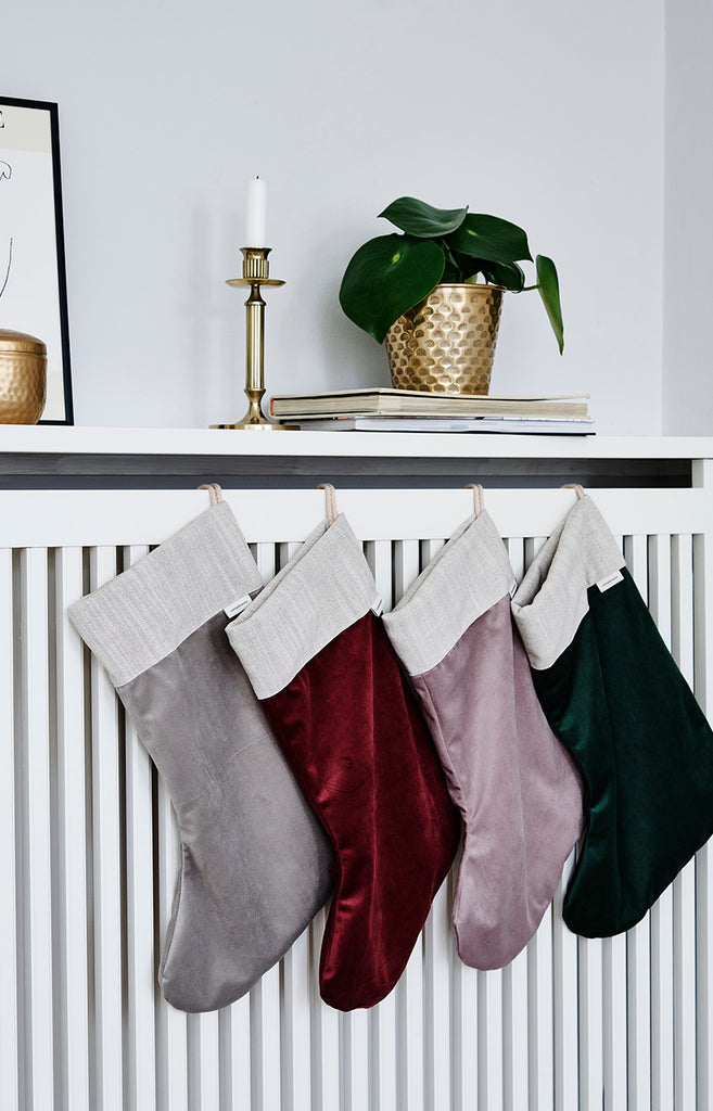 Den smukke julesok af velour, foret med vores casual Marrakech stof i hør, er syet af restmetervarer fra vores pude kollektioner. Det er nemlig vigtigt for os at minimere spild af hensyn til miljøet. Perfekt som adventsgave.