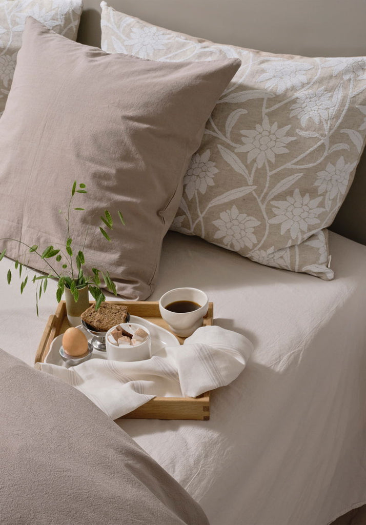 Kommer i sæt af dynebetræk med transparente knapper og pudebetræk med kuvertlukning. Vi anbefaler at vaske på 40°C for at skåne miljøet og opnå længere holdbarhed.