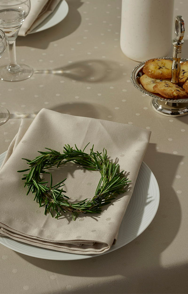 Stofservietter anvendes igen og igen og er helt rigtige for vores miljø.\nSmå og lette prikker spredt i et simpelt design giver Confetti servietterne et charmerende og legende udtryk.\nMatch med en smuk Confetti damask dug. Produceret i Portugal og STANDARD 100 by OEKO-TEX® certificeret.